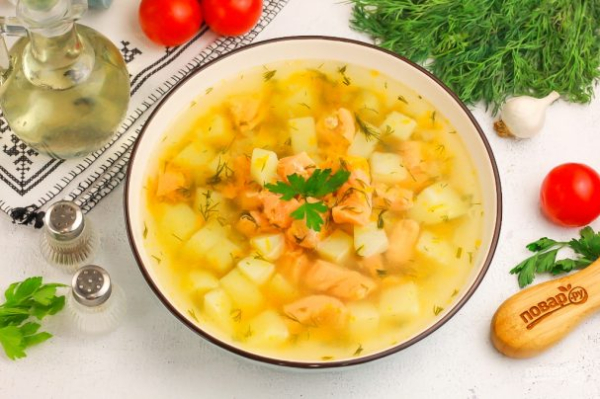 Обязательно включите в свой рацион суп из красной рыбы, он полезен как взрослым, так и детям! Рыба готовится очень быстро, особенно если вы нарежете ее мелкими кубиками, кусочками. Первым отваривайте картофель, так как он варится дольше других ингредиентов. По желанию можно добавить в конце приготовления в бульон плавленый сыр или спрессованный чеснок.